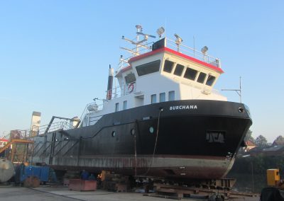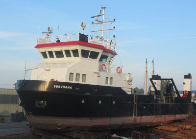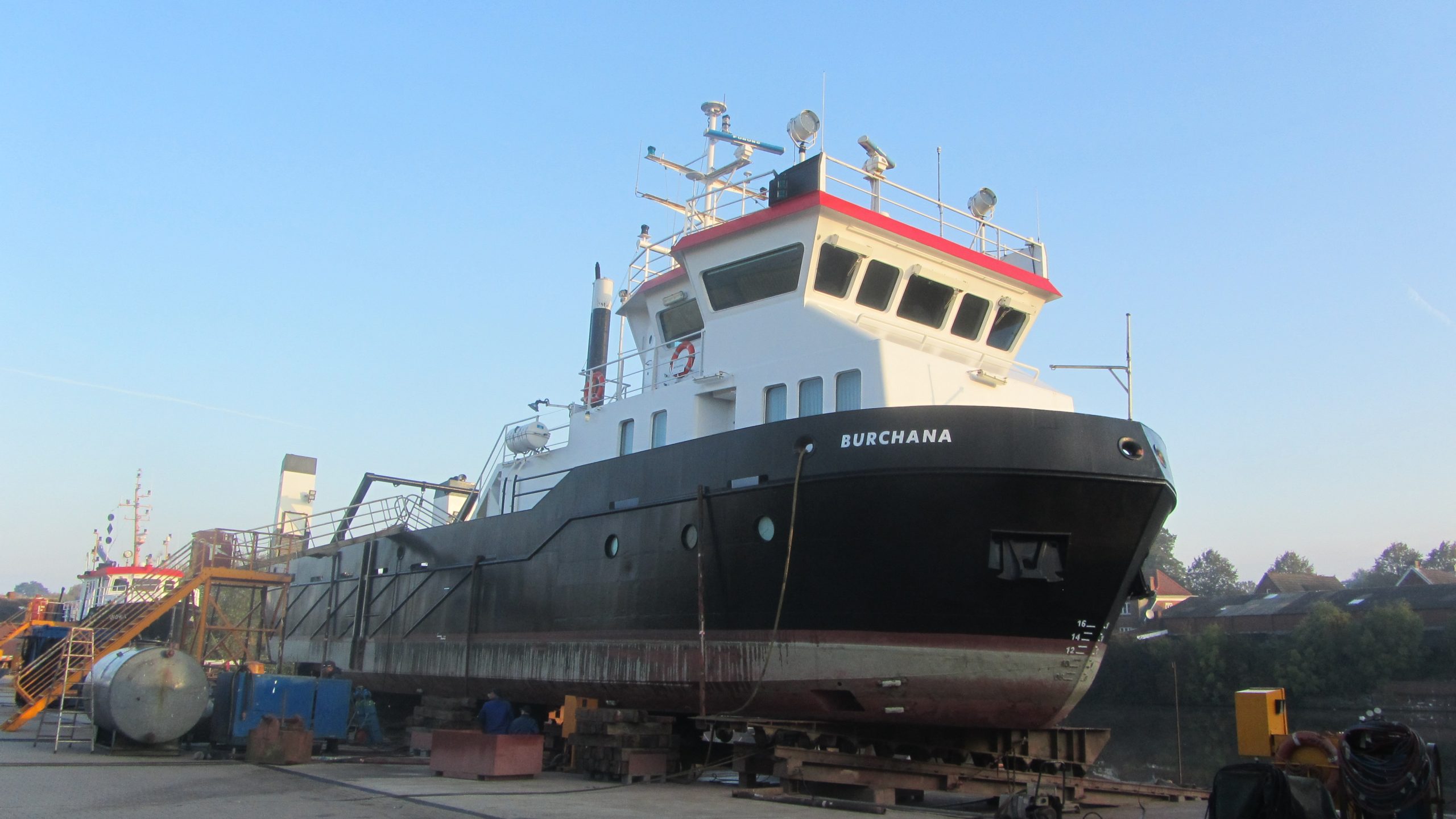 Am 17. April lief das Forschungsschiff „BURCHANA“ des Niedersächsischen Landesbetriebes für Wasserwirtschaft Küsten- und Naturschutz, Norden, in unseren Werfthafen ein. Das Schiff erhält einen neuen Unterwasseranstrich und es werden umfassende Konservierungsarbeiten am Schanzkleid, am Fischereigalgen und der Außenhaut sowie eine Befundung der Propeller durchgeführt Zeitgleich wird eine neue Wellendichtung montiert und die vorhandene Windmessanlage versetzt. Vorausgesetzt wird das Schiff am 28. April wieder seinen Heimathafen ansteuern.