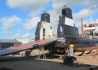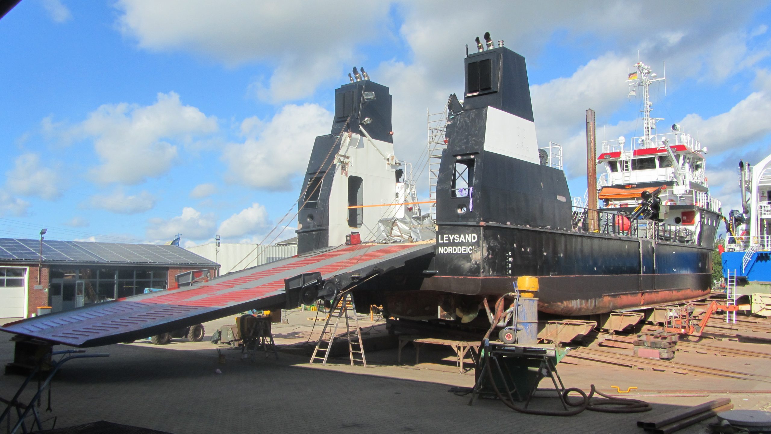 Um eine Bodenbesichtigung und die erforderlichen Konservierungsarbeiten am Unterwasserschiff und den Schiffsseiten durchführen zu lassen, legt die LMS „LEYSAND“ des Niedersächsischen Landesbetriebes für Wasserwirtschaft Küsten- und Naturschutz, Norden, eine Werftzeit vom 18. August bis voraussichtlich 15. September ein. Zeitgleich werden beide Ruderwellen gemessen und es werden neue Bodenbeläge in der Kombüse, des WC-Raumes sowie der 4 Dusch-WC-Räume eingebracht.