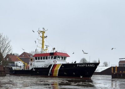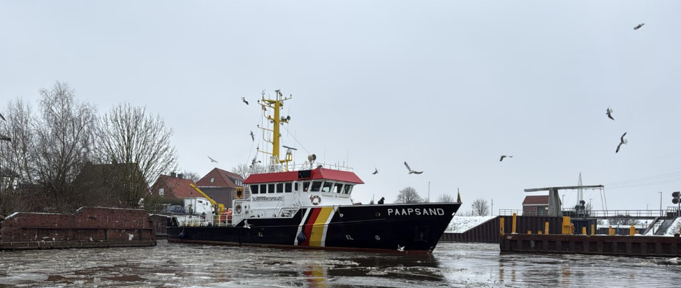 Eine kurze Werftzeit legt das Vermessungsschiff „PAAPSAND“ des Wasser- und Schifffahrtsamtes Emden in der Zeit vom 02. – voraussichtlich 12. Februar ein um einen Austausch des Echolotschwingers durchführen zu lassen. Zudem wird sich das Schiff einer Besichtigung des DNV unterziehen.