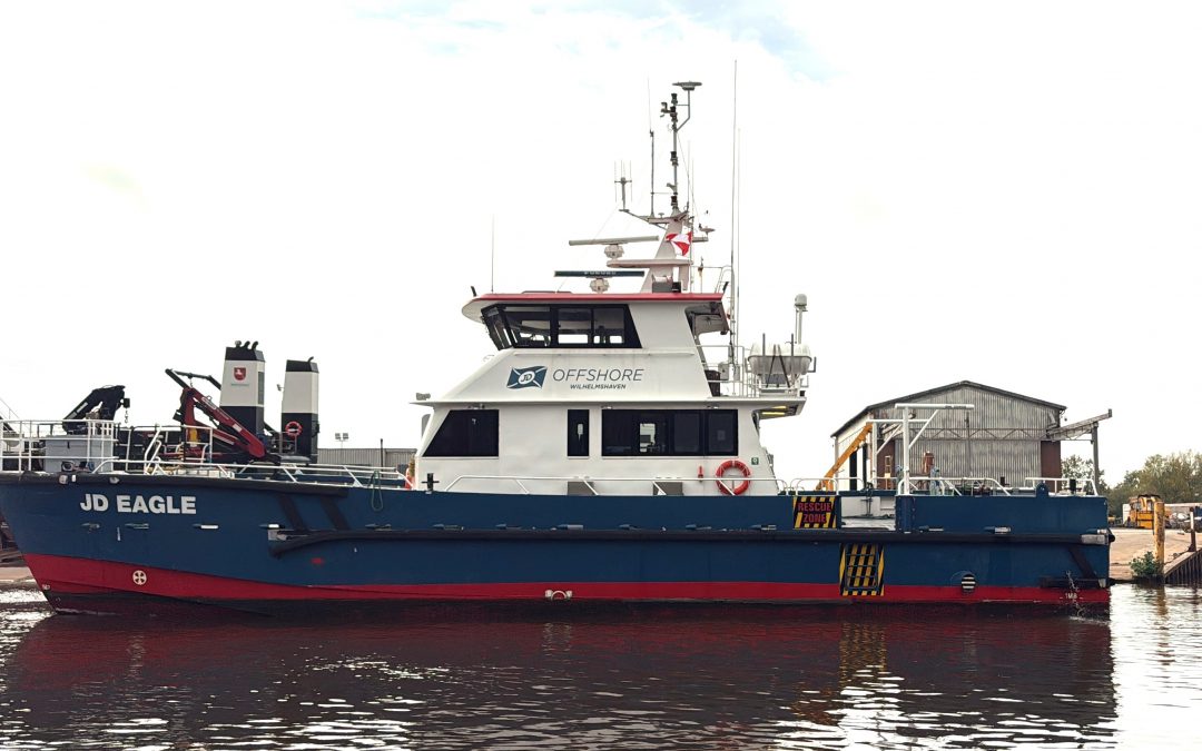 Seit dem 01. Oktober liegt der Windparktender „JD EAGLE“ der Firma J. Johannsen & Sohn, Lübeck, an unserer Werft. An dem Windparktender werden an der Stb-Seite die Fenderläufe erneuert und die Außenhaut auf Beschädigungen kontrolliert. Zeitgleich wird ein Teilbereich der Reling erneuert. Voraussichtlich wird der Tender am 20. Oktober wieder auslaufen.